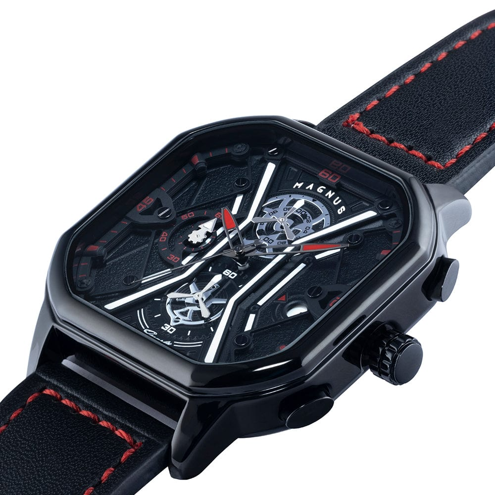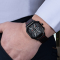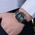 Featuring a distinctive square dial and refined color combinations, the IMPERIUM 921 brings a bold yet tasteful aesthetic to your wrist. The custom 3D-modeled face is not only a visual statement but houses multifunction displays 24-hour indicator, day of the week, and stopwatch all easily controlled via stainless steel side buttons.